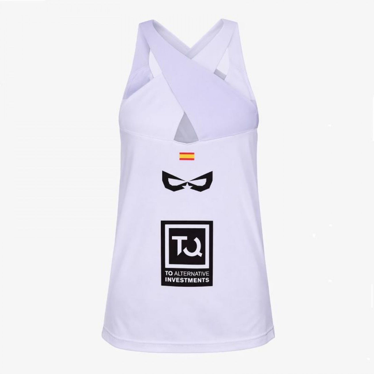 Official design Claudia Fernández, with the flag of Spain and sponsorship logos on the back, reinforcing its competitive identity.